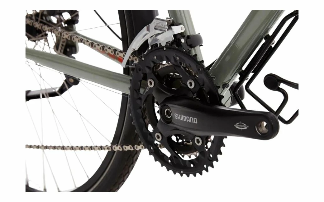 Le Genesis Tour de Fer 20, son cadre en acier, une transmission Shimano 10 vitesses, ses roues en 28″ et ses freins à disque méchaniques.