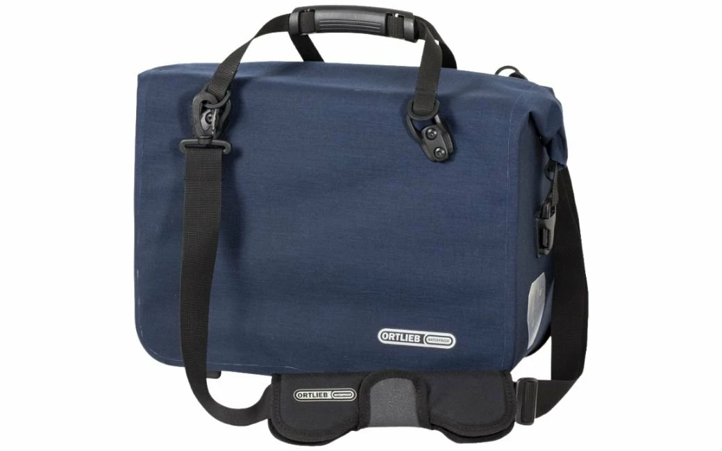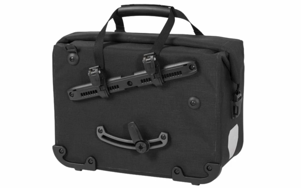 La sacoche-cartable étanche pour vélo, à fermeture par enroulement, peut se fixer à droite comme à gauche sur le porte-bagages et s’accroche ou se décroche en un tour de main. La sacoche Office-Bag offre suffisamment d’espace pour y ranger deux grands classeurs DIN A4 (taille L), les stylos, le mobile & Co. Elle est également parfaitement adaptée au transport de votre ordinateur portable, grâce à son insert spécial matelassé (accessoire vendu séparément). Deux éléments en « matériau 3M » ultra réfléchissant et le logo ORTLIEB réfléchissant (pas pour la variante au coloris argent) sur le devant de la sacoche garantissent d’être vu en cas de mauvaise visibilité ou dans l’obscurité. Un protège-arête au dos de la sacoche et des petits patins garantissent protection et bonne stabilité. La bandoulière matelassée assure le port confortable recherché.
