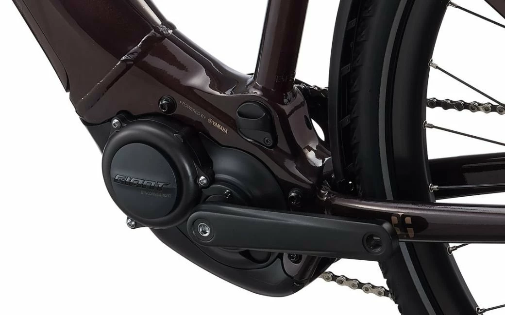 Le Liv Amiti E+ 2D, son cadre en aluminium, une transmission Shimano 9 vitesses, ses roues en 28″, sa batterie EnergyPak 500Wh et ses freins à disques hydrauliques.